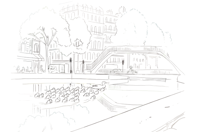Suite des recherches graphiques pour "Des Voisins pas comme les Autres" le Canal st Martin, une fenêtre sur les toits de Paris et extrait des abeilles du parc Georges Brassens, en 2012 et 2013/ Grafic development for a documentary about Paris wildlife. Backgrounds and storyboard sample